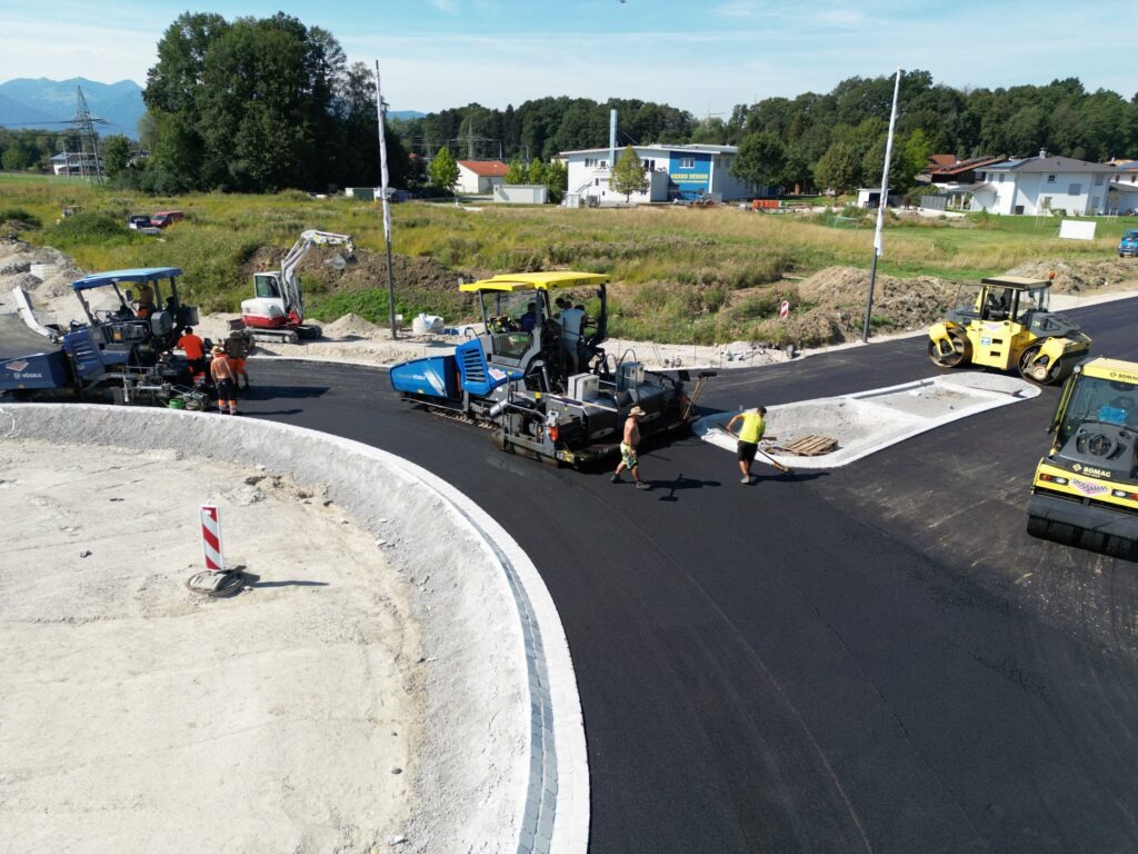 Im Bauabschnitt 1 des Gewerbegebiets Brucklach wurde die Hochbreitenstraße einschließlich einer Kreisverkehrsanlage an der Miesbacher Straße errichtet.